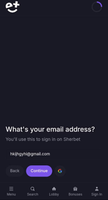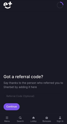*When you visit the Sherbet Casino web browser, you can follow the same process by clicking on Sign Up at the top right side of the main page.